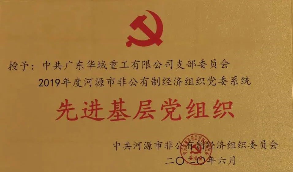 On the morning of June 30th,2020,the Committee of non-public economic organizations of Heyuan city of the Communist Party of China held a meeting to celebrate the 99th anniversary of the founding of the Communist Party of China and the commendation meeting,at which the chairman Yi Xinhe personally attended.Huang Juping,the secretary of the Party committee of the non-public economic organization,gave a party lecture on all the party secretaries,conveying the spirit of general secretary Xi Jinping’s important speech at the NPC and CPPCC National Committees.The Party branch committee of Guangdong Huayu heavy industry Co Ltd,won the tittle of advanced grassroots party organization in the final commendation series and the branch secretary,Yi Xinhe ,won the honorary tittle of excellent party member.
