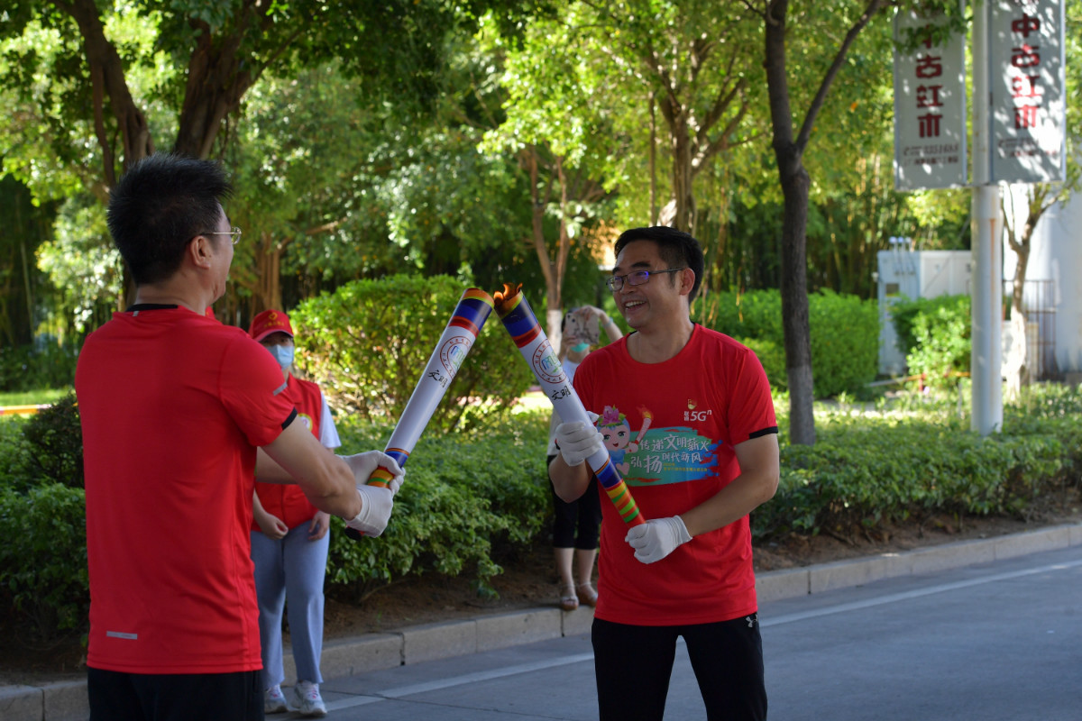 The cheering slogan of building civilized Heyuan city together and serving the country by doing business honestly and trustworthily resounded over the runway.The chairman Yin Xinhe successfully handed over the torch to the ninth torch holder in the sonorous and powerful slogans of the running guards and Huayu support team.
