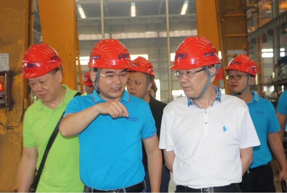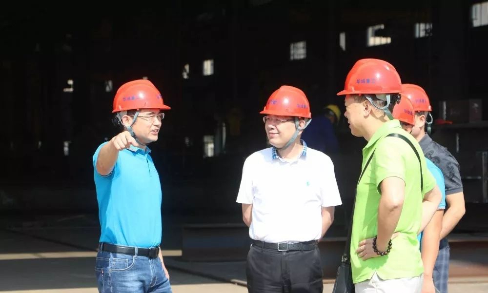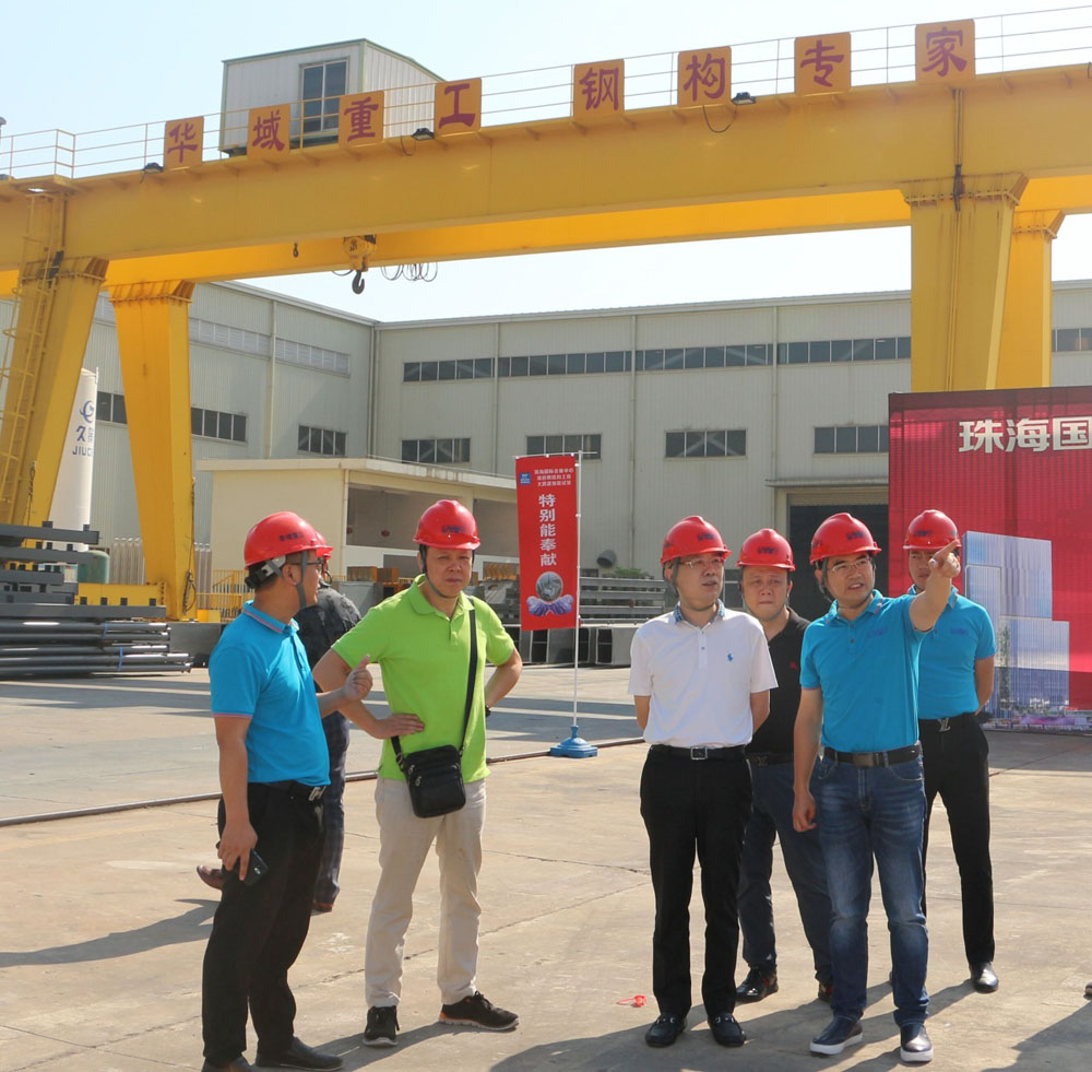 Yi Xinhe, Chairman of the Group, with the senior staff of Huayu Heavy Industry to accompany Mr. Xiong Fangping and his delegation to visit the Group's production base in Heyuan and introduced the scale, production capacity, operation and major projects being produced and processed, including Zhuhai International Convention and Exhibition Center (II). period).