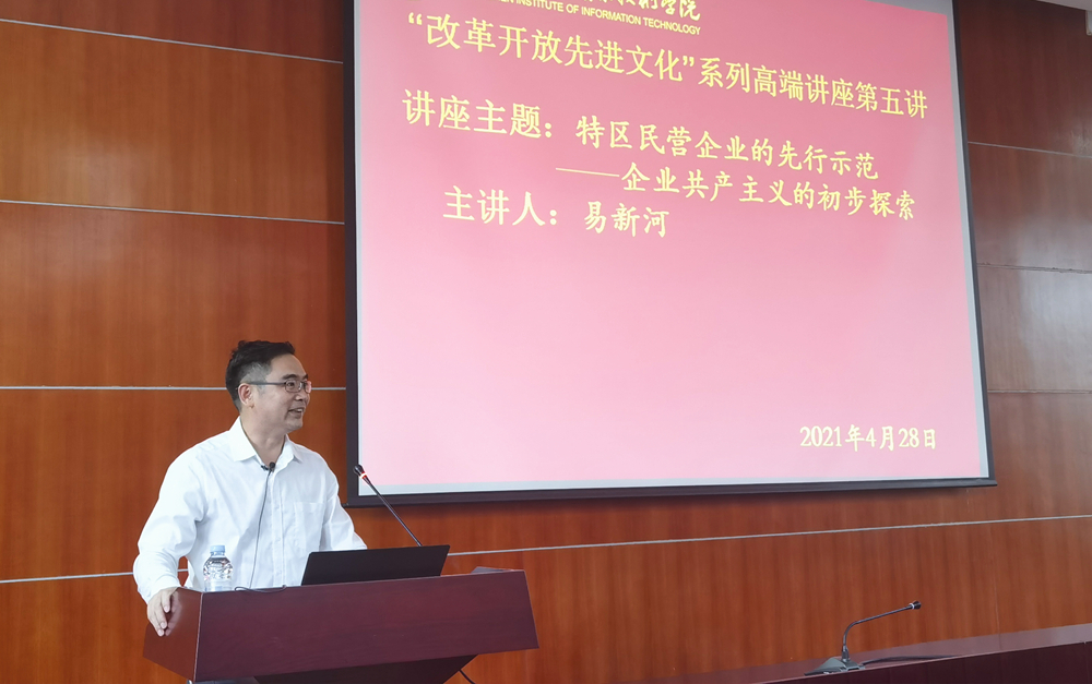 2021年4月28日,華域集團董事長易新河受邀出席深圳信息學院 “改革開放先進文化”系列高端講座,并做了一場名為《特區民營企業的先行示范——企業共產主義的初步探索》專題講座。