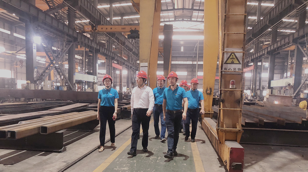 易新河董事長率眾高層陪同孫鋒書記一行深入華域重工工廠車間參觀,向孫書記重點匯報了華域重工近期的生產經營情況:疫情期間業績逆勢增長,截止10月份,2021年產值已超過2億元,與行業內知名企業形成長期合作關系,高標準、嚴要求的香港訂單持續穩定,新增立體車庫(EPC總承包)項目,工廠二期擴建;此外,還在裝配式建筑創新研發領域發力,與天津大學及蘭州理工大學簽訂了產學研校企合作協議。