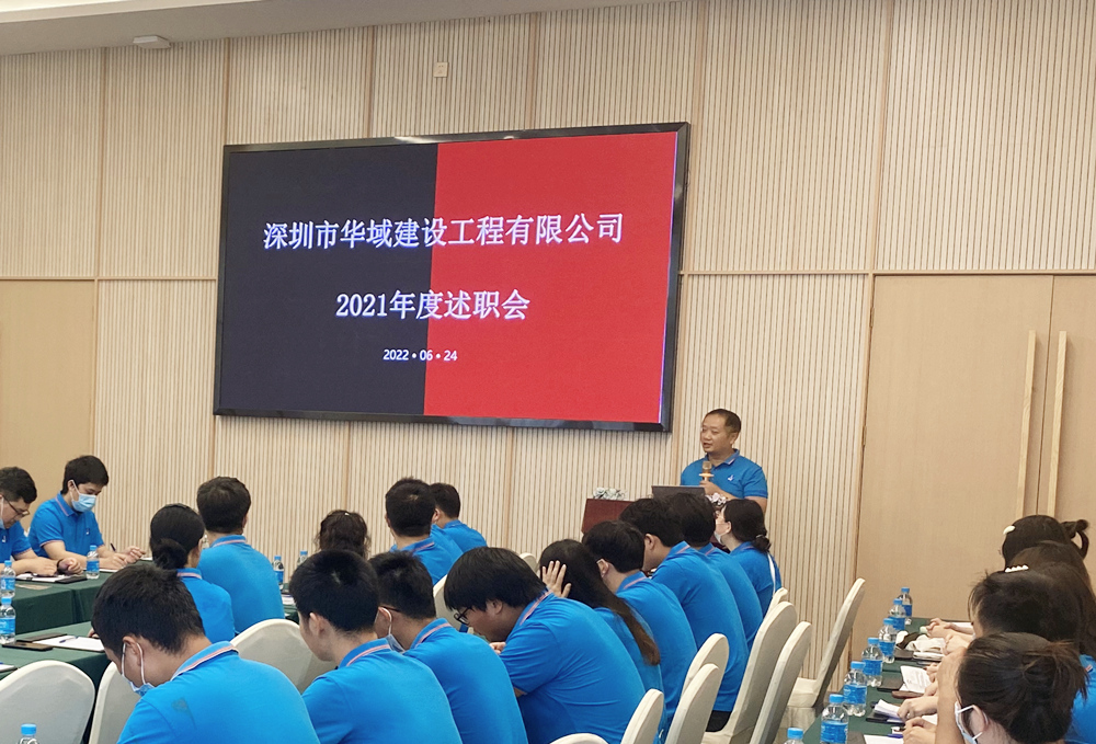 2022年6月24日,華域建設2021年度述職會議在河源舉行,華域集團總裁姚玲,華域建設總經理賓谷云,華域集團副總工程師廖初龍,華域建設副總經理黎江南、劉國梁等領導出席了會議。
