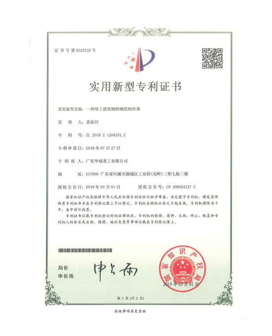 一種用于建筑物的鋼結(jié)構(gòu)外罩專利證書